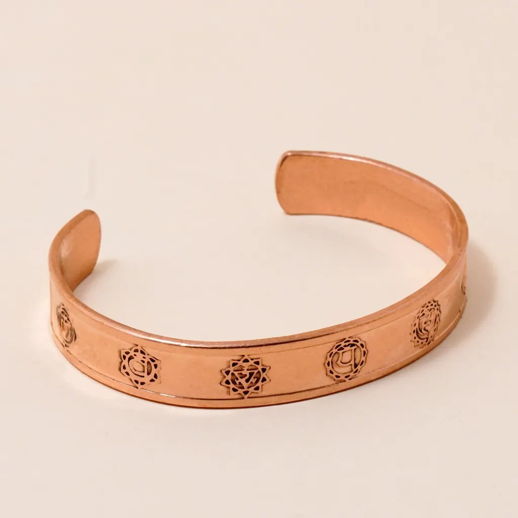 Chakra copper cuff. Crafted of pure copper with the mantras of the seven chakras engraved across its length